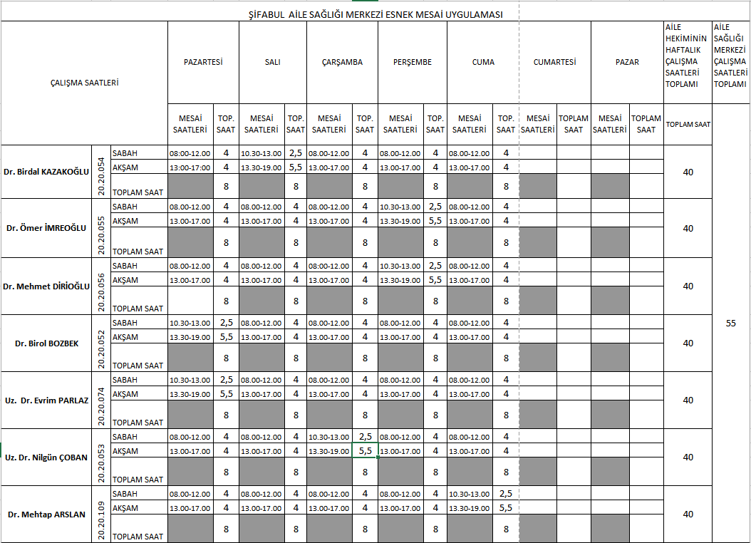 ARALIK ESNEK MESAI - ŞİFABUL ASM